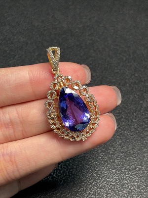 C35202681 Tanzanite pendant with diamond accents, non-gold, total weight approximately 6.4g