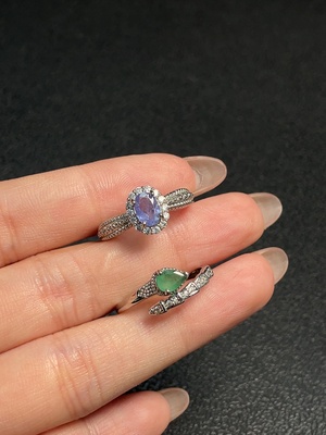 C31620357 Tanzanite + Emerald Clarity Enhanced Ring, Adjustable, Non-Gold, Non-Diamond, Total Weight Approx. 3.90g, Sell as a Lot
