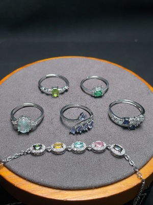 C31576715 Crystal, Aquamarine, Garnet Inlaid Bracelet + Ring + Loose Stones, Non-Gold Inlaid, Total Weight Approximately 5.93g