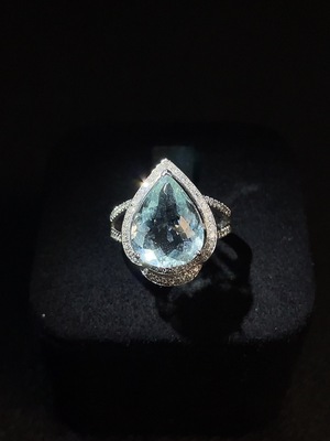 C35095854 Aquamarine Ring 72% Gold Content with Diamond Accents, Total Weight Approx. 3.72g, Size 23, Stone 12.8*10.5mm