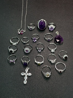 C35201078 Crystal + Sapphire + Tourmaline + Aquamarine + Diopside + Garnet Pendant + Ring, Adjustable, Non-Gold, Total Weight Approx. 65.85g, Sell as a Lot