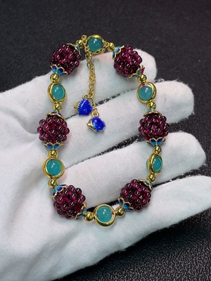 C35185181 Garnet bracelet with non-natural/non-gold accent stones, total weight approx. 18.52g, stone size ~2.7mm