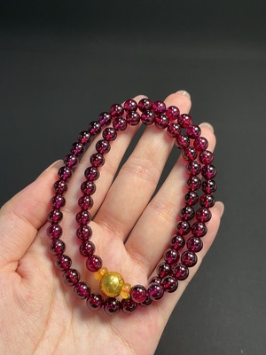 C40710922 Garnet bead chain, no imprint, gold content tested at Au 99%, total weight approximately 43.57g, bead size about 6.6mm