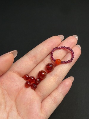 C27155762 Red Agate Bead Strand Non-Gold Setting Approx. 8.2mm Total Weight About 35.08g Visible Organic Material With Garnet and Crystal