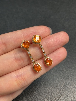 C37436873 Garnet Earrings with 73% Gold Content and Diamond Accents, Total Weight Approximately 3.7g