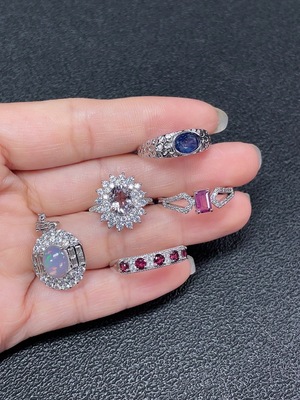 C34007017 Opal + Garnet + Sapphire + Crystal Jewelry Non-Gold Total Weight Approx. 11.51g Sell as a Lot