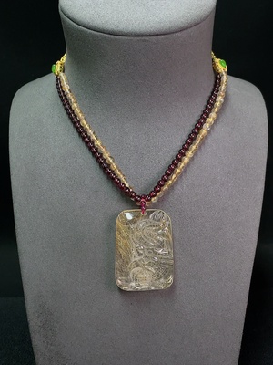 C38497808 Crystal Pendant Non-Gold with Garnet, Stones May Be Non-Natural, Total Weight Approx. 53.73g, Including Chain