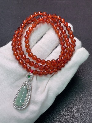 C34990091 Garnet Bead Strand with Jadeite, Non-Gold, Total Weight Approx. 35.93g, Size ~5.4mm