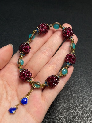 C33890986 Garnet Bracelet with Crystal, No Stamp, Only Surface Au75%, Total Weight Approx.13.9g, Size Approx.6.5mm