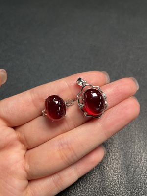 C36228765 Garnet Pendant + Ring Adjustable Non-Gold Total Weight Approx. 8.26g Sell as a Lot