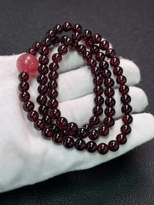 C33851186 Garnet Bead Strand with Non-Natural Accent Stones, Non-Gold, Total Weight Approx. 24.16g, Size About 4.5mm