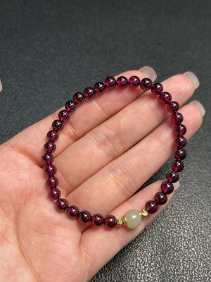 C35123065 Garnet Bracelet with Hetian Jade, Non-Gold, Total Weight Approx. 10.9g, Size About 5.3mm