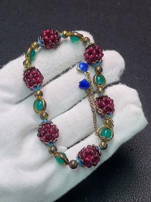 C36233352 Garnet bracelet with non-natural and non-gold accent stones, total weight approx. 17.02g, stone size approx. 2.6mm