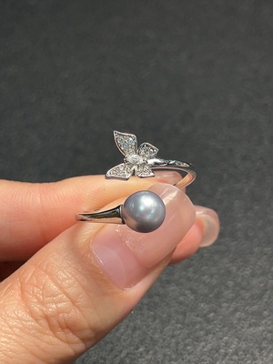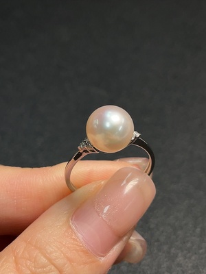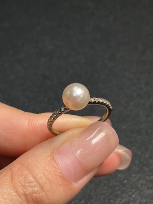 C36228771 Seawater pearl ring, color origin undetermined, adjustable, non-gold, total weight approximately 2.05g, size about 6.6mm