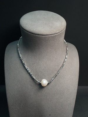 C24796543 Pearl bead chain, non-gold inlay, total weight approx. 7.68g, size approx. 3.8mm