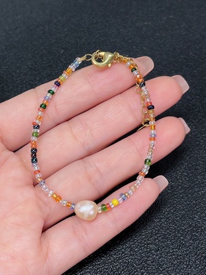 C38484954 Pearl bracelet with non-natural and non-gold accent stones, total weight approx. 2.43g, stone size approx. 6.7mm (mixed stones)
