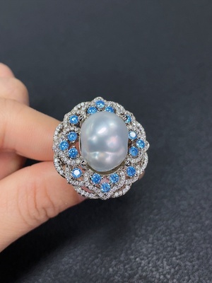 C39590098 Seawater Pearl Ring, Color Origin Undetermined, Non-Gold, Adjustable, Total Weight Approximately 14.79g