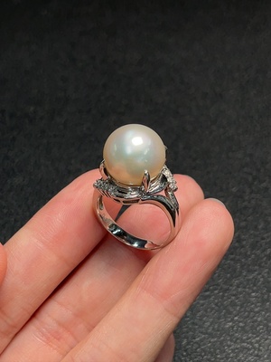 C37369298 Seawater Pearl Ring PT90% with Diamond, Total Weight Approx. 10.54g, Stone Size 12.7mm, Size 15