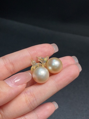 C35122952 Seawater pearl earrings, color origin undetermined, 18K gold, total weight approximately 6.47g, size about 12.8mm