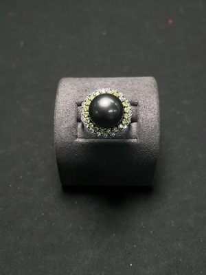 C37369298 Seawater Pearl Ring PT90% with Diamond, Total Weight Approx. 10.54g, Stone Size 12.7mm, Size 15