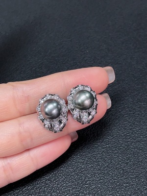 C36301701 18k seawater pearl earrings, color origin undetermined, total weight approximately 4.05g, size about 9.5mm