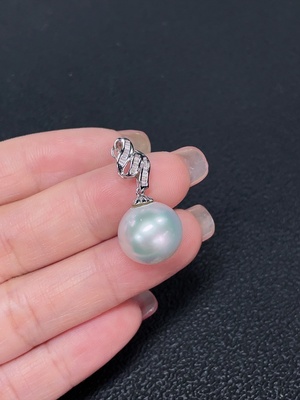 C38498711 18k seawater pearl pendant, color origin undetermined, total weight approximately 1.72g, size around 10mm