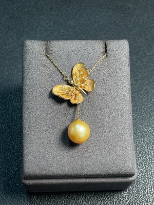 C21409512 Seawater Pearl Necklace Non-Gold Setting Approx. 14.4mm Total Weight Approx. 102.50g Color Origin Undetermined With GILDER Certificate: Natural color Special Trade Name: Radiant Gold Nacre Thickness: 2.5-3mm