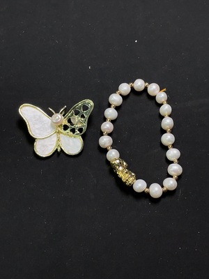 C32716325 Pearl Brooch + Bracelet, Total Weight Approx. 21.16g, Non-Gold Setting, Sell as a Lot