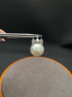 C37415684 Seawater Pearl Pendant 18K Gold with Diamond Accents Color Origin Undetermined Total Weight Approx. 3.18g Size About 12.2mm