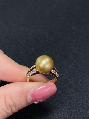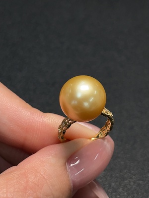 C37369152 Seawater Pearl Ring, Color Origin Undetermined, Gold Content AU52%, Total Weight Approx. 3.87g, Size 17, Stone 8.9mm