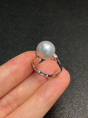 C38497323 18K Sea Water Pearl Ring, Color Origin Undetermined, Non-Diamond Pearl Influence, Total Weight Approx. 2.47g, Size 9, Stone Approx. 8.2mm