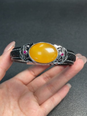 C33891908 Amber Beeswax Bracelet with Non-Natural Accent Stones, Total Weight Approx. 6.15g, Sizeiors About 6.8mm