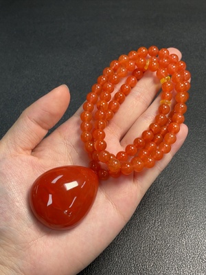 C38486522 South Red Agate Pendant with Visible Organic Matter, Total Weight Approximately 76.21g Including Chain, Paired with Amber