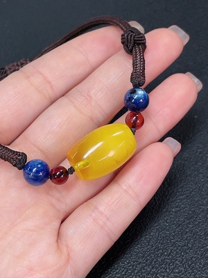C38499128 Amber Beeswax Bracelet with Non-Natural Stones, Total Weight Approx. 6.97g (Including String)