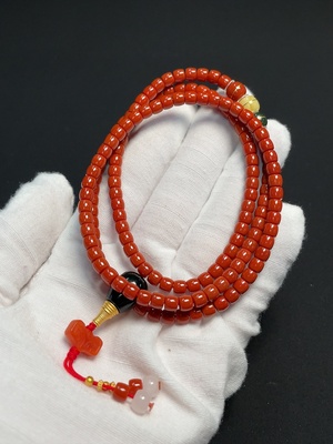 C38544281 Red Agate Bead Strand with Hetian Jade and Amber/Beeswax, Visible Organic Matter, Marked Red Without Stamp, Gold Content Tested Au74%, Undetectable for Remainder, Total Weight Approx. 28.11g, Size ~4.7mm
