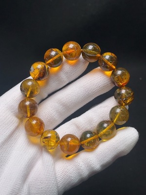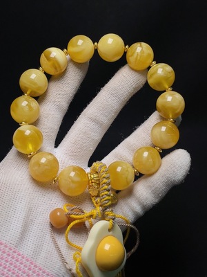 C28300776 Amber Beeswax Bracelet Total Weight Approximately 14.43g Size About 11mm Repaired at Marked Area