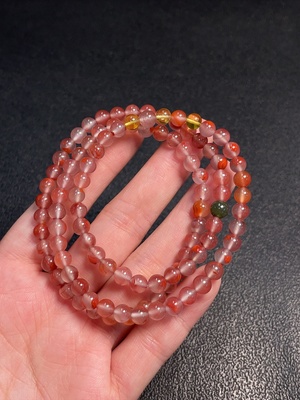 C37435979 Red Agate Bead Strand with Hetian Jade + Amber Beeswax, Visible Organic Matter, Total Weight Approx. 24.11g, Size Approx. 5.6mm