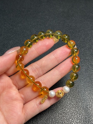 C35183101 Amber Beeswax Bracelet, Total Weight Approx. 8.44g, Size About 8.7mm, with Pearl, Non-Gold