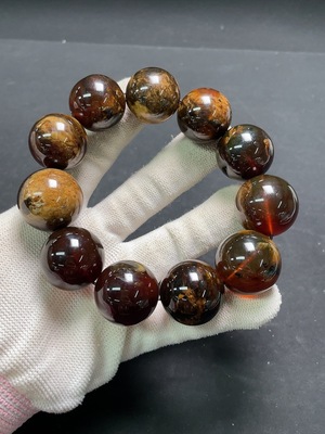 C31618977 Amber and Beeswax Bracelet, Total Weight Approximately 16.92g, Bead Size About 12mm