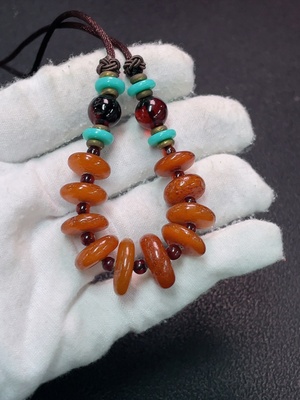 C36228218 Amber Beeswax Bracelet with Southern Red Agate, Total Weight Approx. 20.8g, Size About 12.7mm