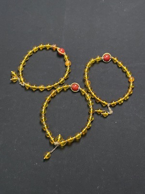 C32763820 Amber and Beeswax Bracelet, Total Weight Approx. 15.75g, Non-Gold Setting, Stones May Be Non-Natural, Sell as a Lot