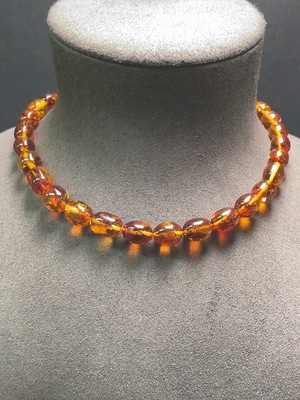 C34038277 Amber Honey Bead Necklace, Total Weight Approx. 31.39g, Bead Size 6.5-10.2mm, Non-Natural Accent Stones Considered