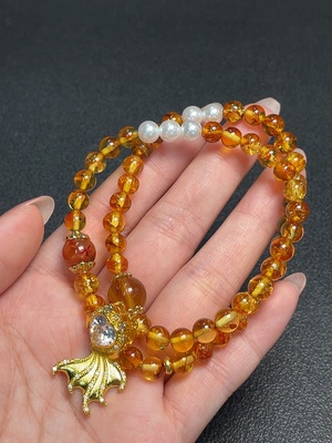 C35183101 Amber Beeswax Bracelet, Total Weight Approx. 8.44g, Size About 8.7mm, with Pearl, Non-Gold