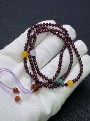 C30509770 Garnet Beaded Necklace with Amber (Non-Natural Matching Stones Considered) Total Weight Approx.14.08g, Size About 3.4mm