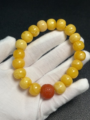 C35183173 Amber Beeswax Bracelet, Total Weight Approx. 23.79g, Size 12.2mm, with Southern Red Agate