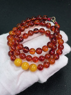 C37447804 Amber and beeswax bead necklace, total weight approximately 16.91g, bead size 7.5-9.3mm, non-gold