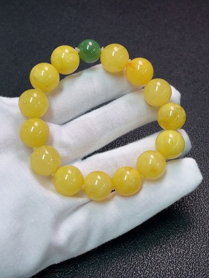 C34006292 Amber Beeswax Bracelet, Total Weight Approx. 24.48g, Bead Size 13.8mm, Paired with Hetian Jade