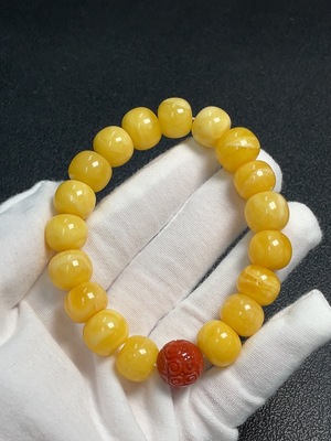 C36228218 Amber Beeswax Bracelet with Southern Red Agate, Total Weight Approx. 20.8g, Size About 12.7mm