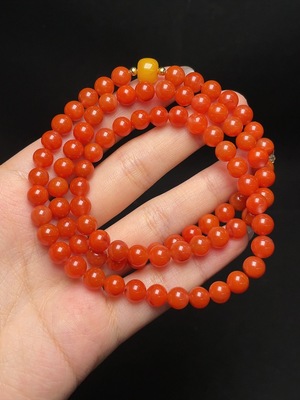 C35098524 Red Agate Bead Necklace with Amber (Visible Organic Inclusions), Non-Gold, Total Weight Approx. 36.2g, Bead Size ~6.6mm