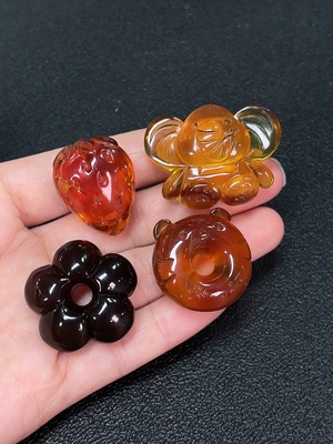 C35121519 Amber beeswax pendant with colorless coating, total weight approximately 6.5g